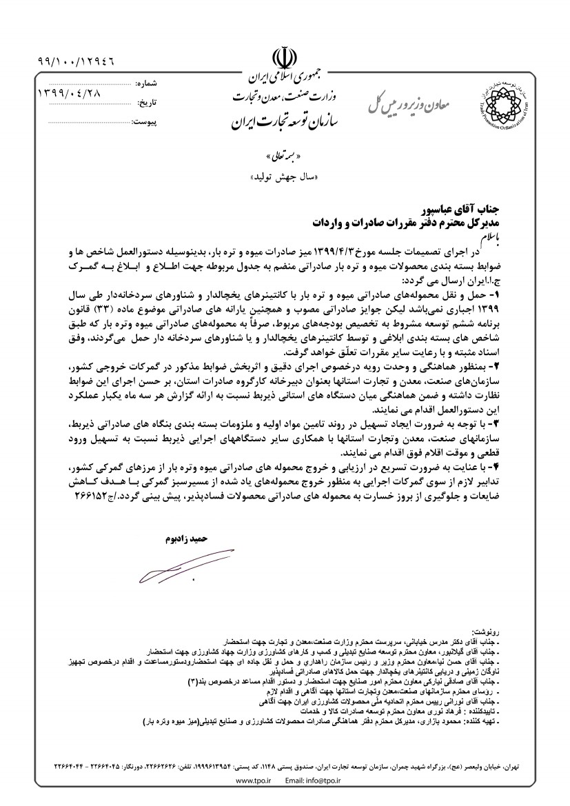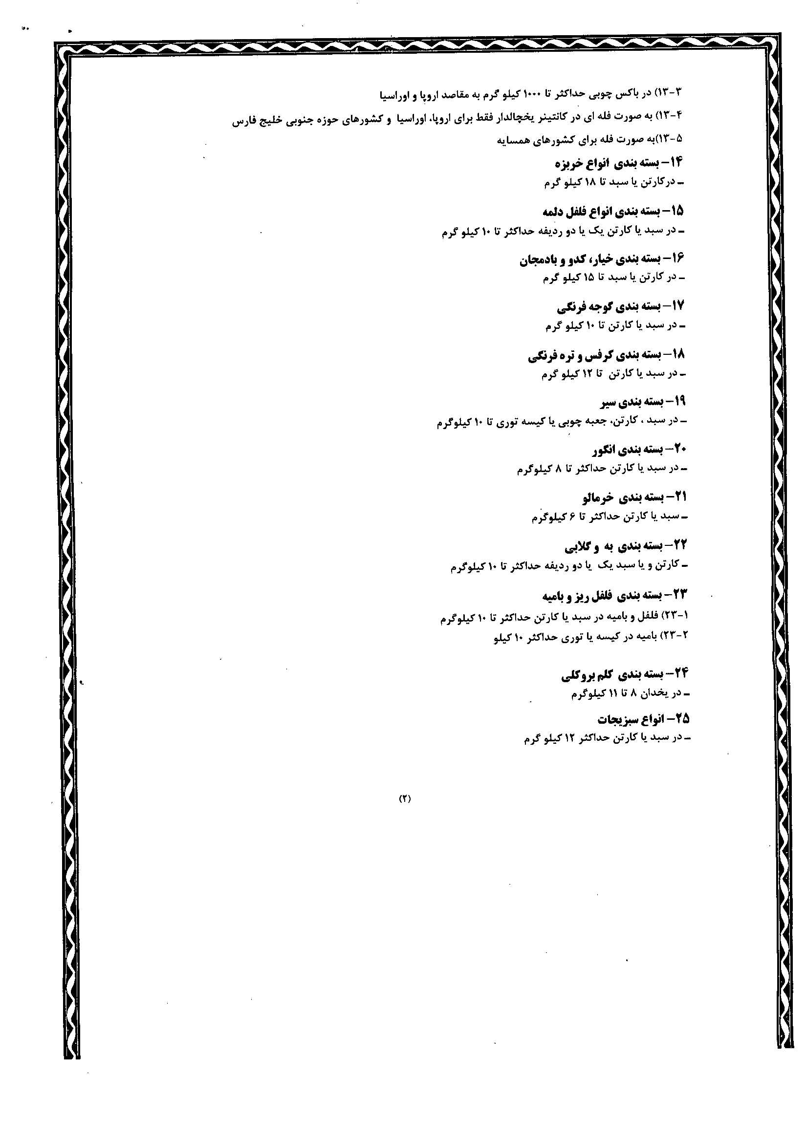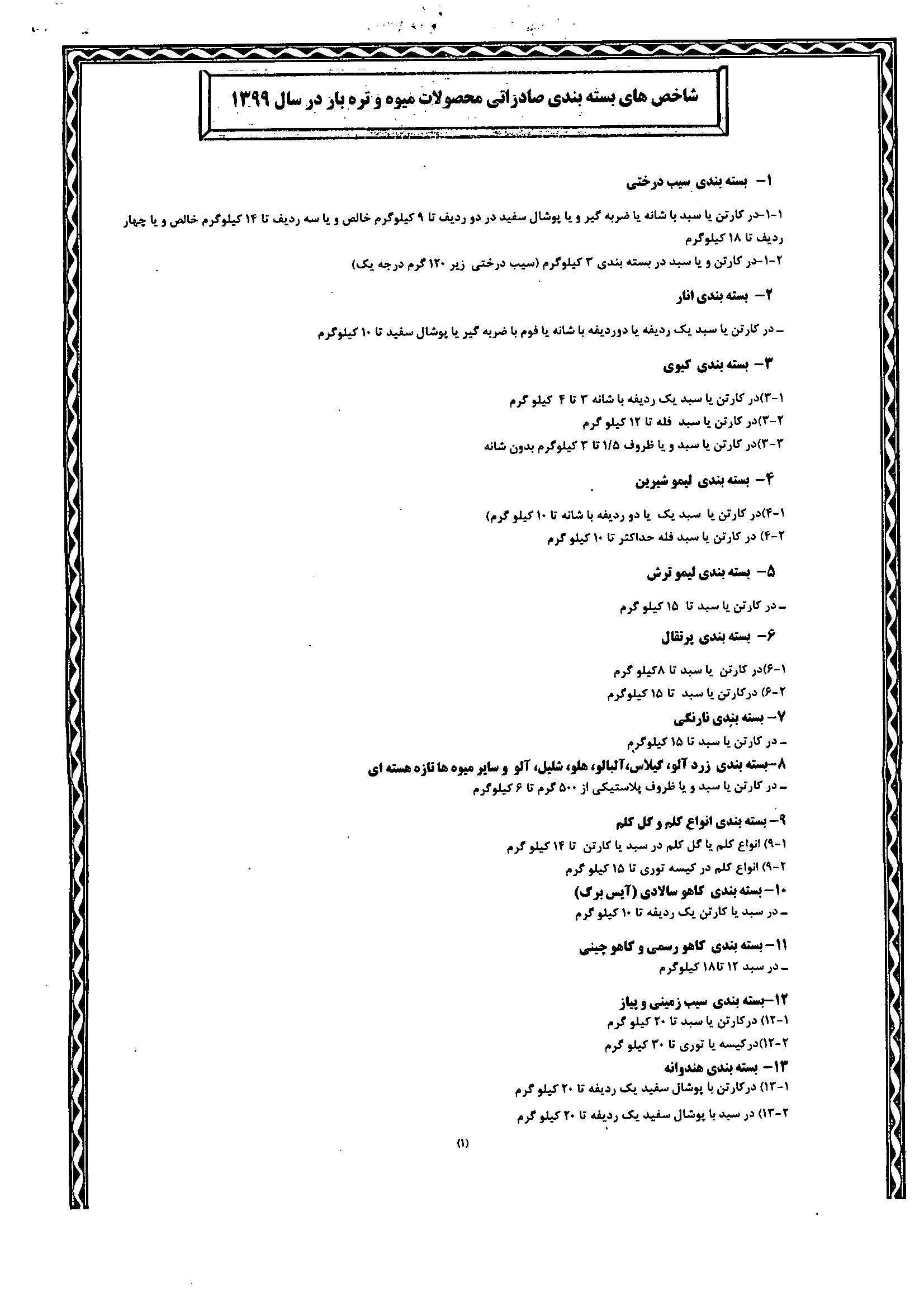 دستورالعمل شاخص ها و ضوابط بسته بندی محصولات میوه و تره بار صادراتی